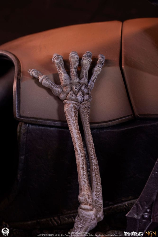depicting Ash standing triumphantly atop the remains of his trusty old car, his shirt ripped open with a sly grin upon his face. Instantly recognizable with a chainsaw in place of his right hand, the Ash 1:4 Statue features impeccably detailed sculpted textures and paint applications.