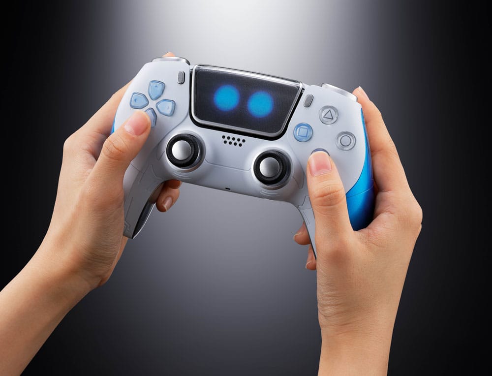 This set for the PS5 game ‘Astro Bot’ comes with an Astro Bot action figure and his spaceship ‘Dual Speeder’. Both figures are made of ABS, PVC and die-cast metal parts. The Dual Speeder has an LED light function. A base with stands for both figures is included.
