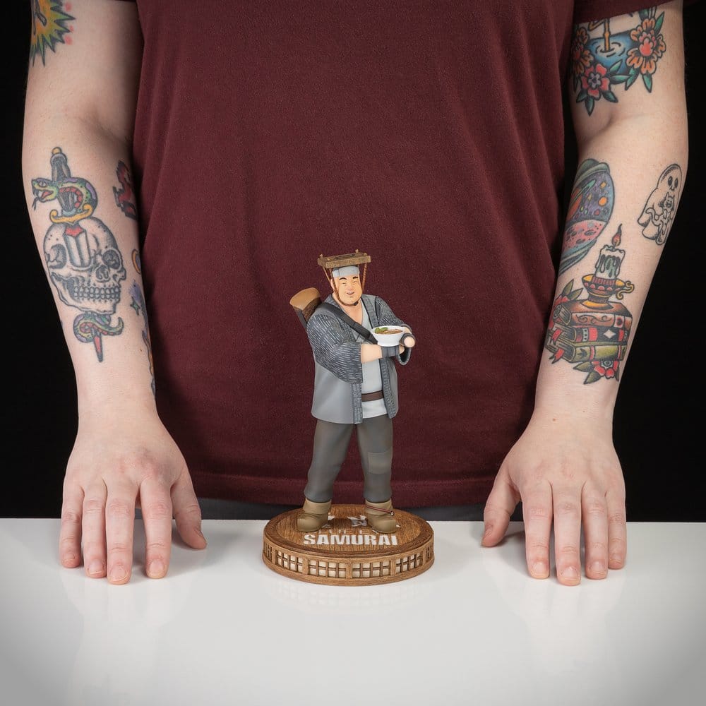 Earn 69 GBCoinsIn the masterfully rendered Netflix animated series Blue Eye Samurai, Ringo is a soba maker and cook, in pursuit of the perfect bowl of noodles and eager for adventure. His kind, cheerful, and determined demeanor makes him a captivating character. This 8.35″ tall figure captures Mizu’s faithful apprentice at his most content, holding a bowl of delicious soba. Don’t miss your chance to own one of Blue Eye Samurai’s most beloved characters!