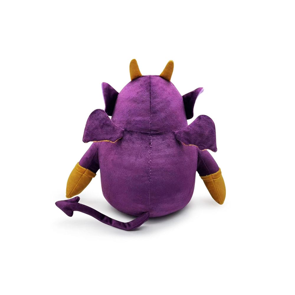 Henchman is just here to help with his Youtooz plush debut! Slumped down with his feet kicked forward and brown gloved hands resting at his sides, he sits at 9 inches tall with a slight frown curving over his mouth. His bright yellow eyes are joined at the middle and shine with bright red pupils while two pointed ears sit at the sides of his head which have short horns emerging from its top. In true demon form, he has small bat-like wings emerging from his wide back and a long thin pointed tail that wraps around to his front. This plush is absolutely packed to the seams with 100% PP cotton and is made of a mixture of minky materials! Absolutely perfect for cuddling, or cheering you on through thick and thin!