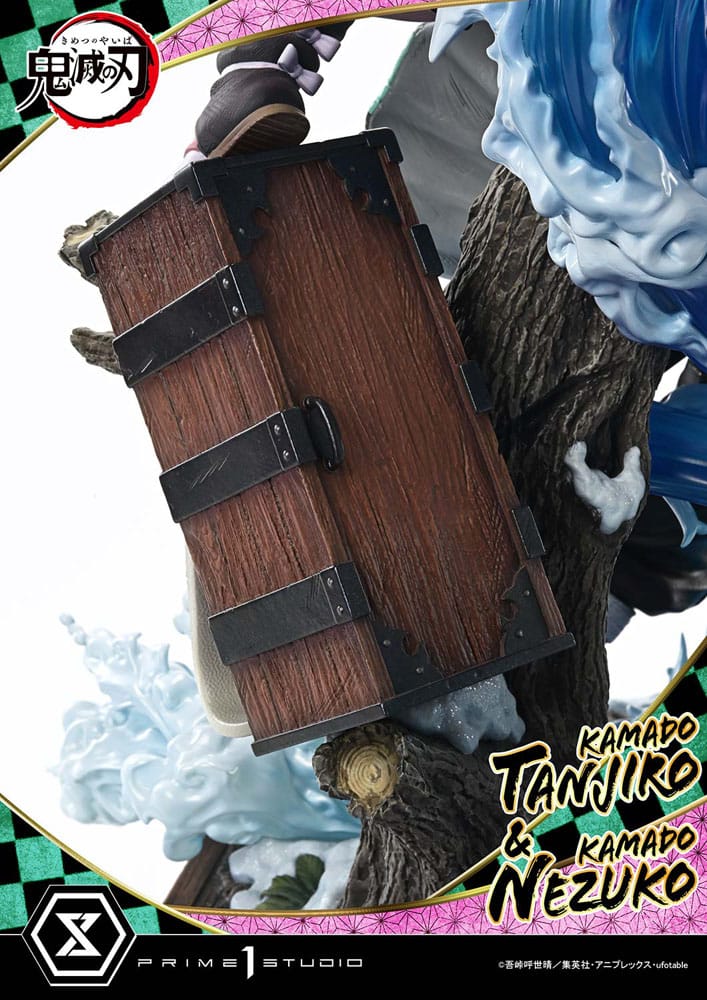 Every sculpted detail and every layer of paint merges the impression of the anime with the tangible qualities of three-dimensional form. The portraits of both Tanjiro and Nezuko are intricately crafted to convey their dignified presence while retaining the gentle softness of their youth. Their flowing haori and kimono are carefully sculpted with iconic patterns, painted with a “2.5D” approach that preserves the anime aesthetic. The breathing effect, finished in beautiful water tones, along with the heavy realism of wood and steel on the base, showcase the craftsmanship invested in every element.