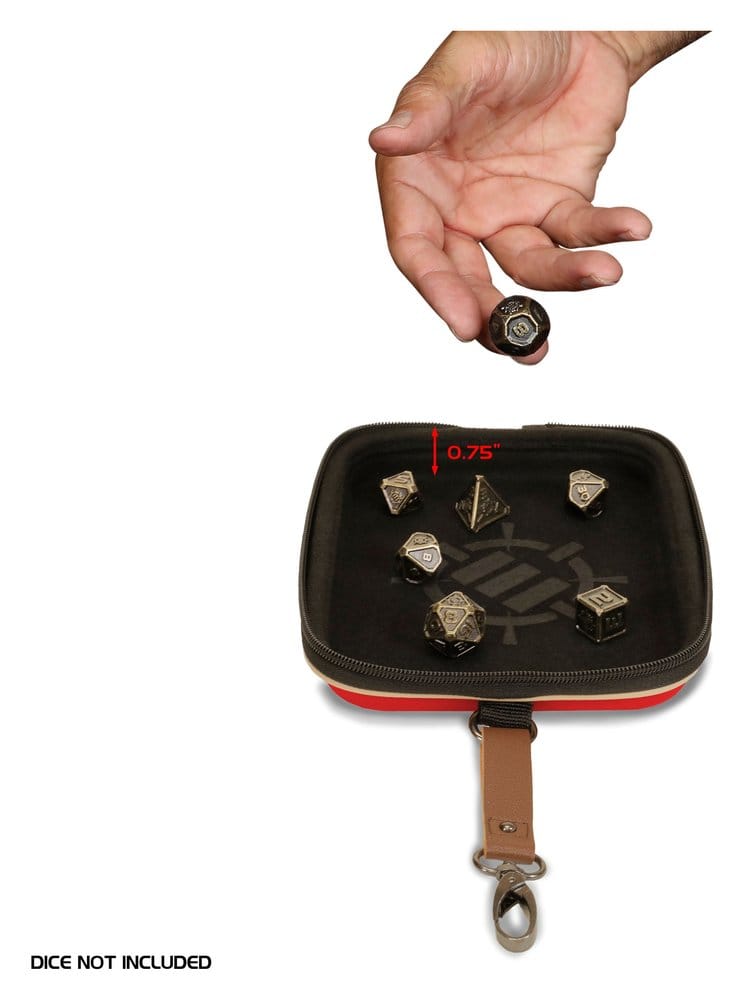 This Designer Edition dice case elevates your game night by providing a secure and organized way to transport and roll your dice.