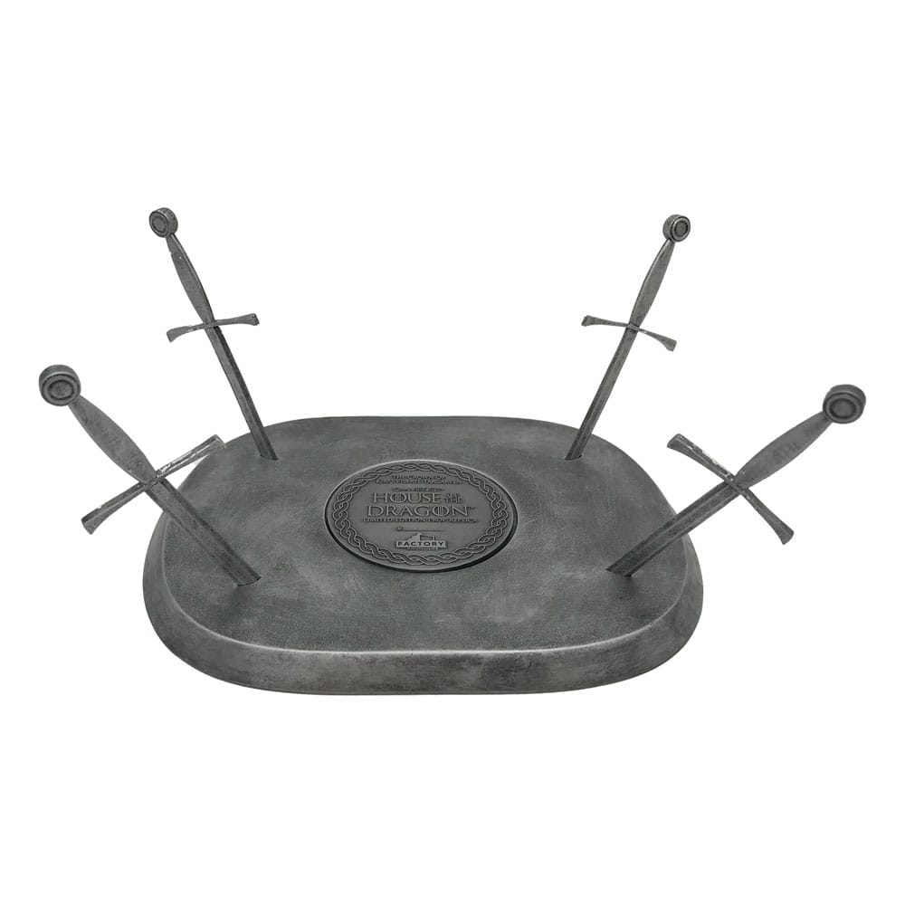 The collectible includes an Iron Throne motif display stand that allows the replica to rest on the hilts of 4 swords. Each piece includes a sequentially numbered medallion cast in metal and is presented in a full color box with a certificate of authenticity. Edition Size 1000 Pieces.