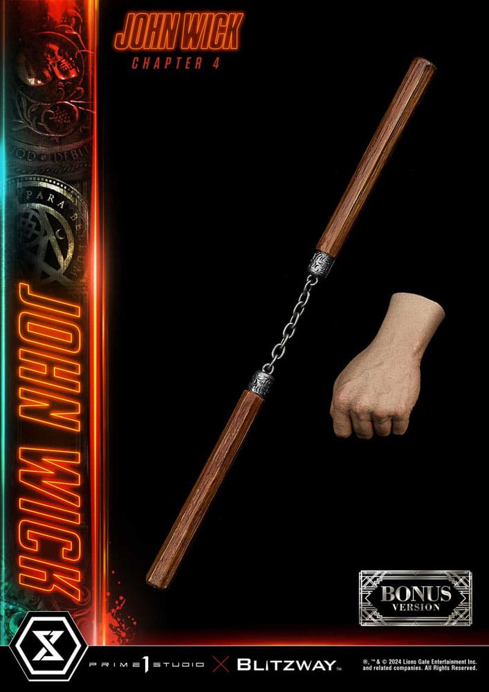 The Bonus Version, when ordered from our official store or any other authorized distributor, adds another swappable left-hand part, allowing you to display John Wick holding a pair of lethal nunchakus.