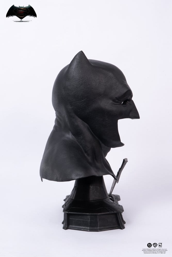 Earn 999 GBCoinsBatman v Superman Dawn of Justice Batman Cowl Replica PureArts has returned with their unmatched and stunning prop reproduction quality with a high-end replica that faithfully recreates the Batman cowl as seen in Batman v Superman: Dawn of Justice. Using our signature poly-hybrid flexible composite material designed specifically for our Batman replicas, the cowl perfectly captures the imposing, battle-worn design worn by Ben Affleck. From the rig