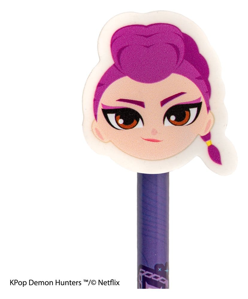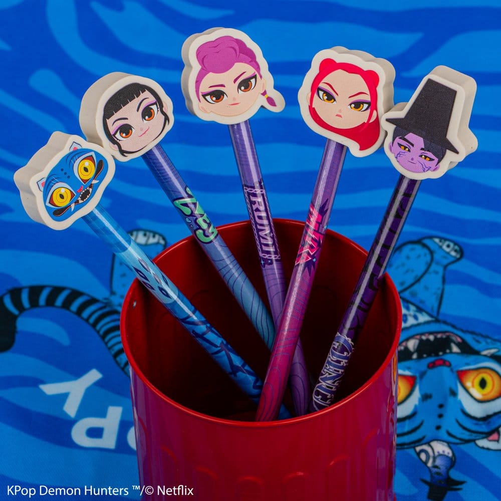 Display with 30 pencils & erasers from Cinereplica, licensed by KPop Demon Hunters.