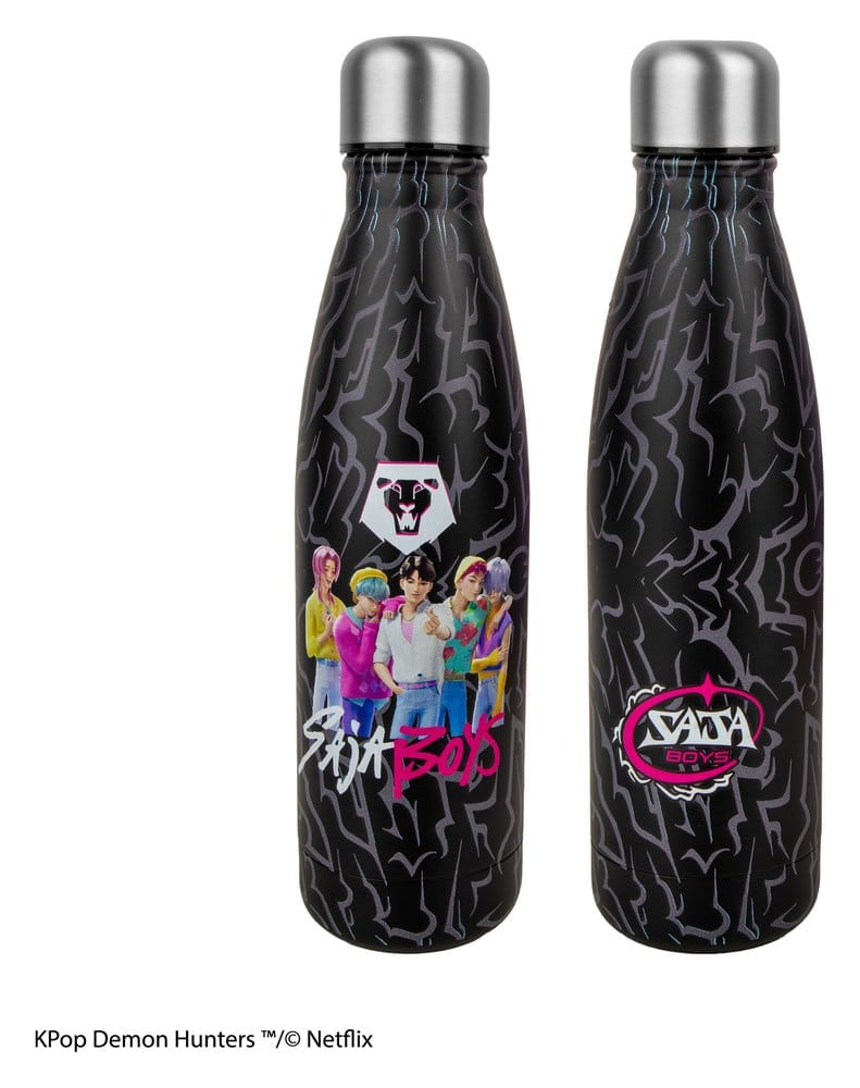 This is a Water Bottle for the KPop Demon Hunters license. It features the Saja Boys design and is made of 100% Stainless Steel.