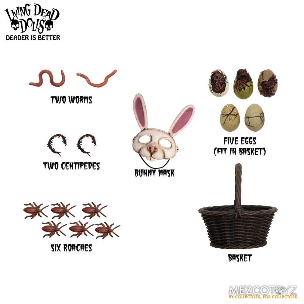 This bedeviled bunny is bewitched with interchangeable facial expressions and hands, movable eyes, enhanced articulation, and a copious amount of creepy crawlers…