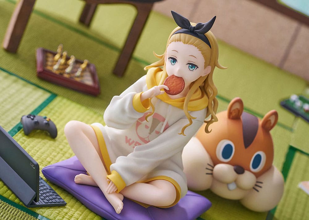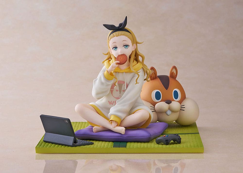 A scene from Kurumi’s daily life is captured as she relaxes on the tatami. The expression on her face as she bites into a rice cracker and gazes at it with a blank look gives the impression of innocence, even though her age is unknown. Her trademark oversized hoodie and wavy hair are a charming and adorable finishing touch. Each motif of the ‘walnut’ stuffed animal with a strong presence, the cushion, and the tablet can be placed freely, so you can enjoy your favorite combination. Don’t miss this opportunity to add her relaxing moments at your fingertips.