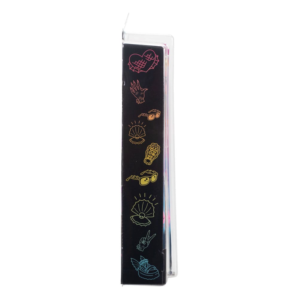 Accessories add to storytelling possibilities: a clear jellyfish backpack, notebook, chewed-on puffer fish pencil, sunnies, ice cream, gummy worms and a bubble drink.