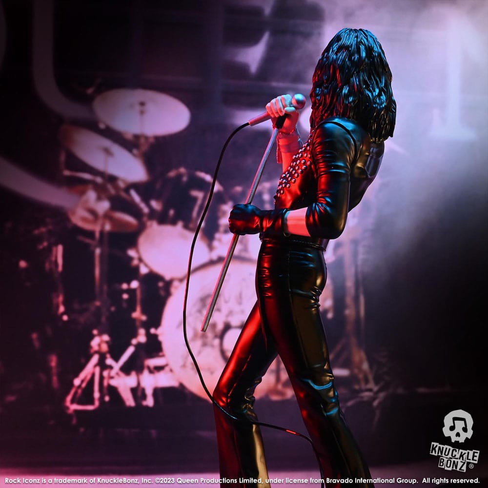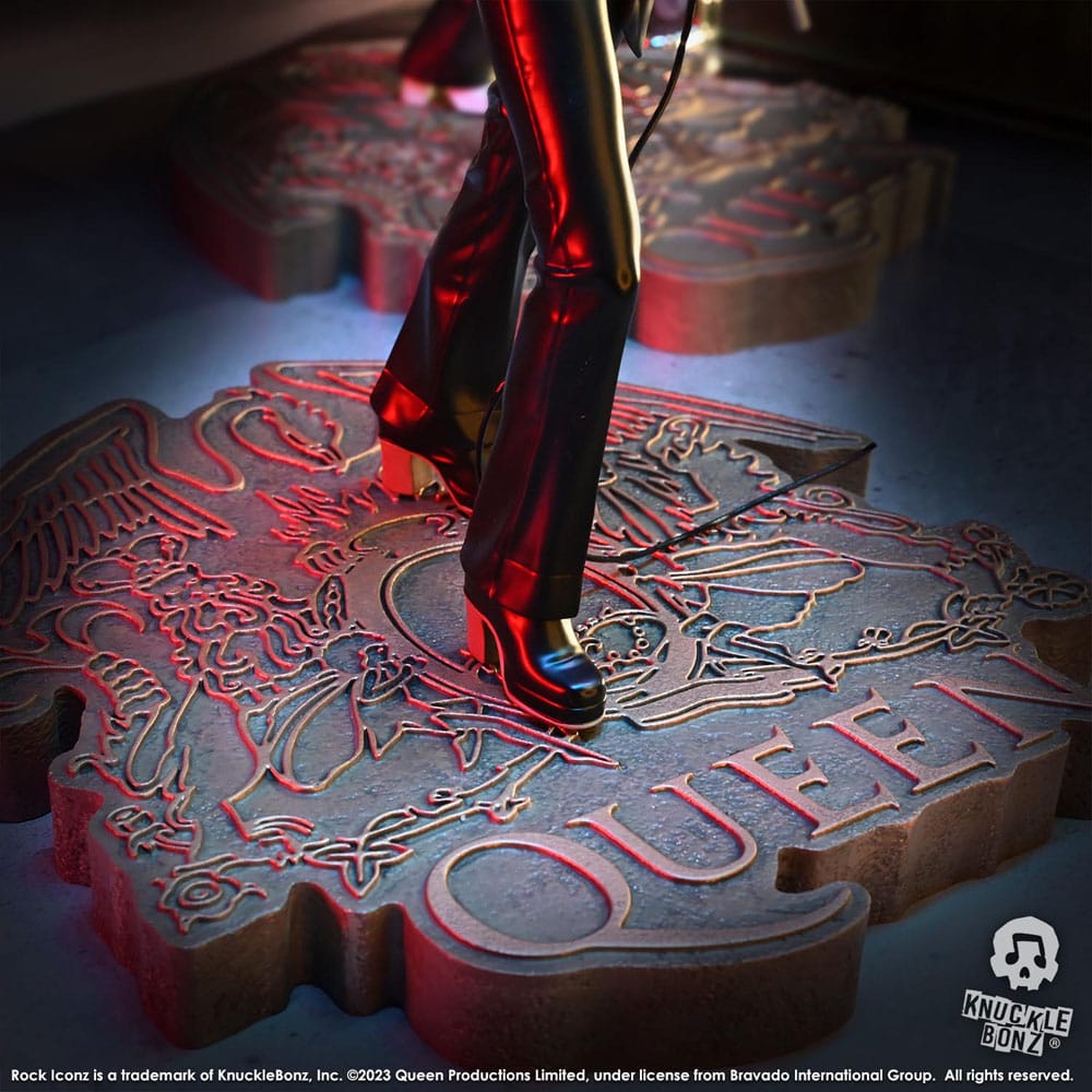 Earn 199 GBCoinsThis collectible features Freddie Mercury performing during the band’s first US tour. Queen was promoting the Queen II album and Sheer Heart Attack was just hitting the airwaves in 1974/75. Each piece is hand-crafted. All Rock Iconz statues are officially licensed, limited edition collectibles. This is a fine-arts process where each statue is hand-cast, painted and numbered. These statues are created in 1/9 scale. Each statue comes with a certifi