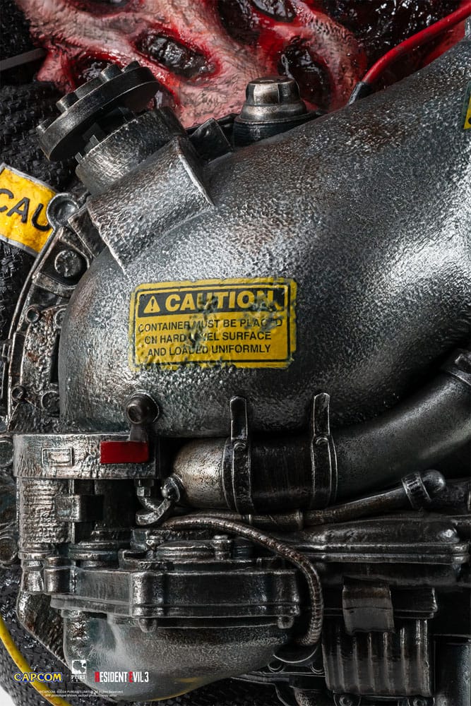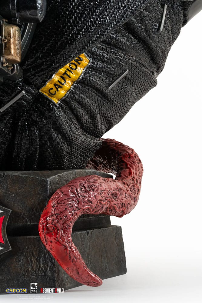 PureArts masterfully crafts the imposing and horrifying bio-weapon from Resident Evil 3, Nemesis, in a massive 1/1 scale bust. His half-exposed face, decaying, stitched skin, protruding teeth, and mechanical tubing are carefully sculpted and painted to create an impressively terrifying bust. Nemesis is mounted atop a concrete-style base bearing the Umbrella Corporation logo, referencing the sinister organization responsible for his creation. Towering at 3 feet tall, you will feel the danger Nemesis brings.