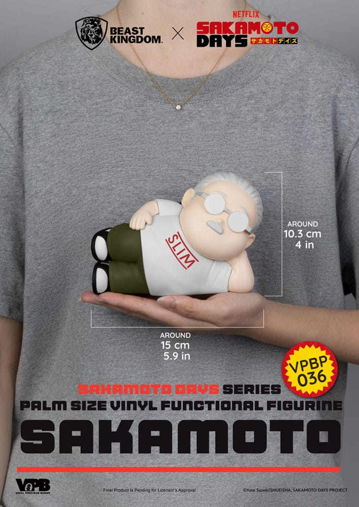 From the smash-hit Japanese manga Sakamoto Days comes the legendary assassin “Taro Sakamoto,” now reimagined as a cute, palm-sized vinyl piggy bank! Meticulously crafted by Beast Kingdom’s “Vinyl Piggy Bank” series, the figure features a chubby, rounded body and a laid-back reclining pose that’s instantly lovable.
