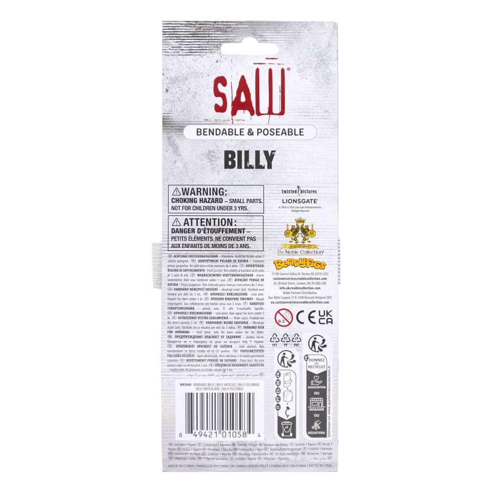 The Noble Collection are pleased to share the latest addition to our popular range of modern horror Bendyfigs™ with the imminent release of Lionsgate’s Saw puppet, Billy.