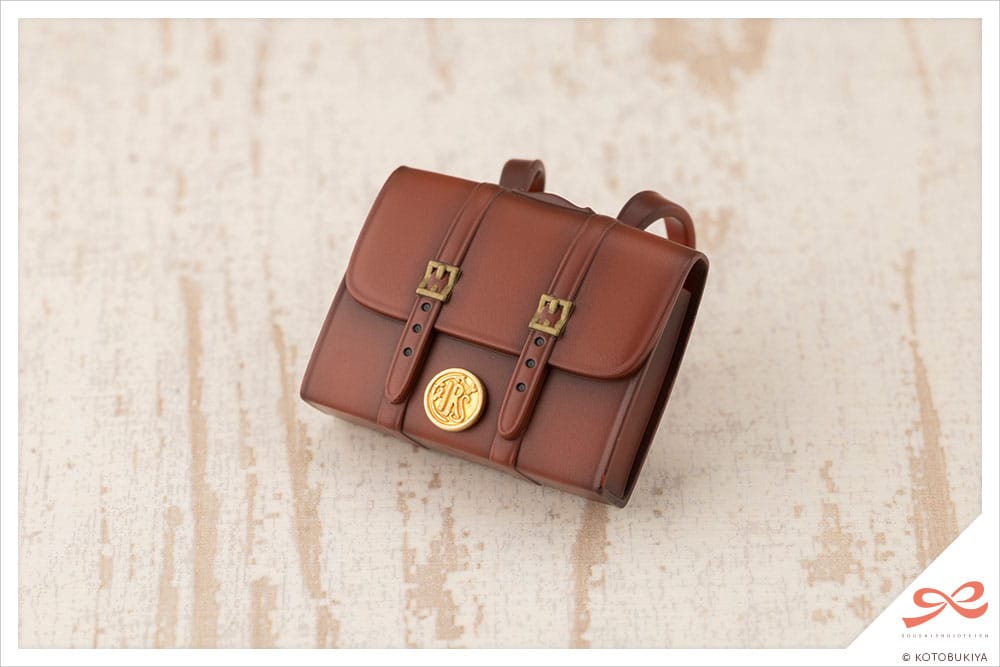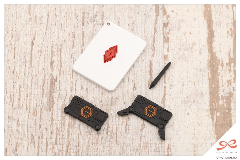 Array of Accessories: As Emma aspires to be a god-like artist, the kit also includes computer tablet and drawing tablet accessories for drawing poses. The back of the computer tablet features a certain special emblem. The smartphone also comes in two versions, standard mode and gaming mode, with the beloved HEXA GEAR logo etched into the back. The St. Iris Gakuen Girls’ High School bag features a removable school emblem covering a 0.3 cm hole that can be used with flying bases. Five hair accessory parts for the various bangs are also included.