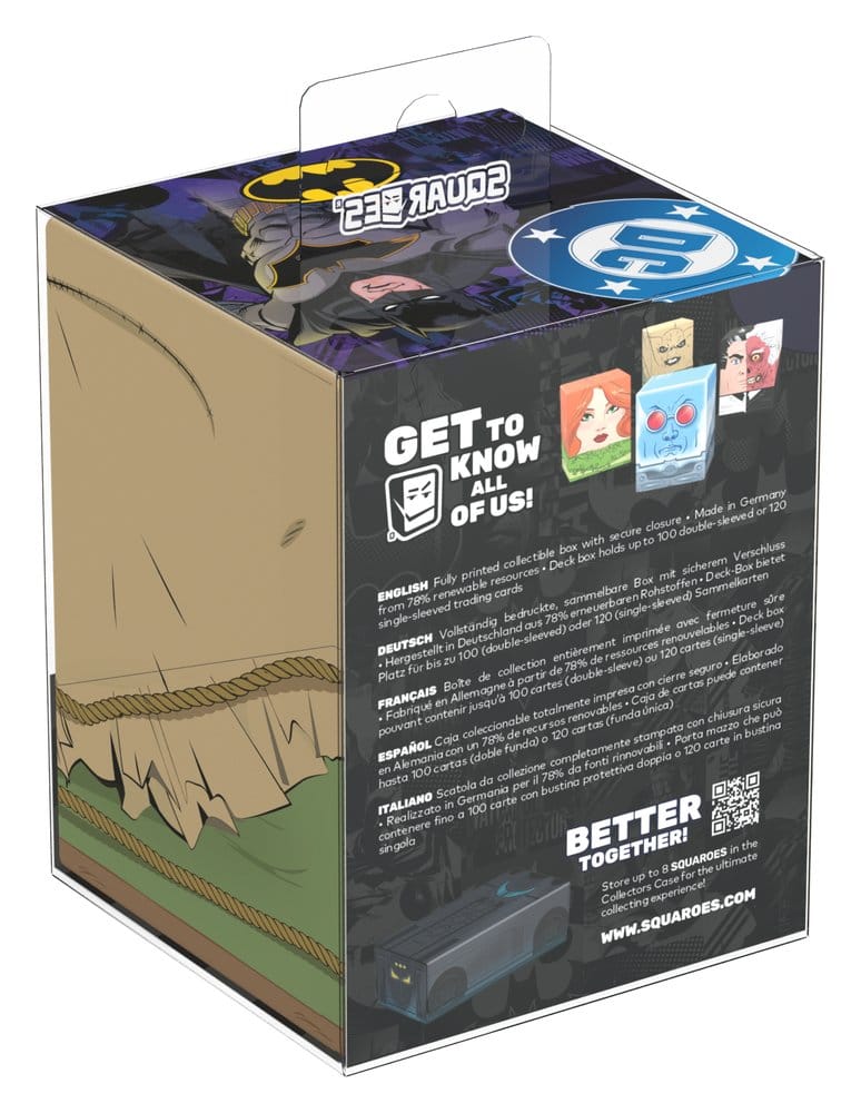 Squaroes by Ultimate Guard are the next generation of TCG gaming accessories! Crafted from high-quality, 78% sustainable materials they combine outstanding card protection with collectibility through exclusive designs, limited one-off printings, and deck boxes available in varying rarities. The Batman: Gotham City Squaroes hold up to 100 standard- or Japanese-sized trading cards (from games like Magic: The Gathering, Poké