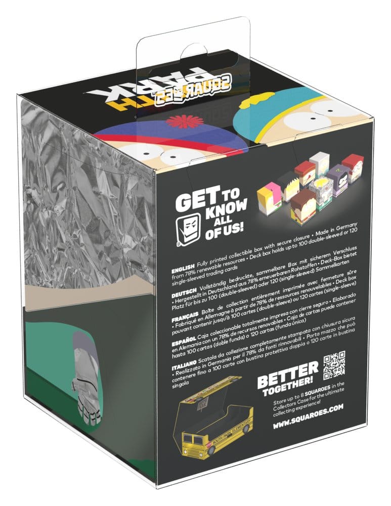 Squaroes by Ultimate Guard are the next generation of TCG gaming accessories! Crafted from high-quality, 78% sustainable materials they combine outstanding card protection with collectibility through exclusive designs, limited one-off printings, and deck boxes available in varying rarities. The South Park™ Squaroes hold up to 100 standard- or Japanese-sized trading cards (from games like Magic: The Gathering, Pokémon, Lorcana, Flesh and Blood, Yu-Gi-Oh!, Riftbound, and One Piece) in double protective sleeves*. As a new spin on Ultimate Guard’s fan-favorite Boulder deck box, Squaroes offer an ultra-sturdy case with a secure closure, while staying easy and convenient to open.