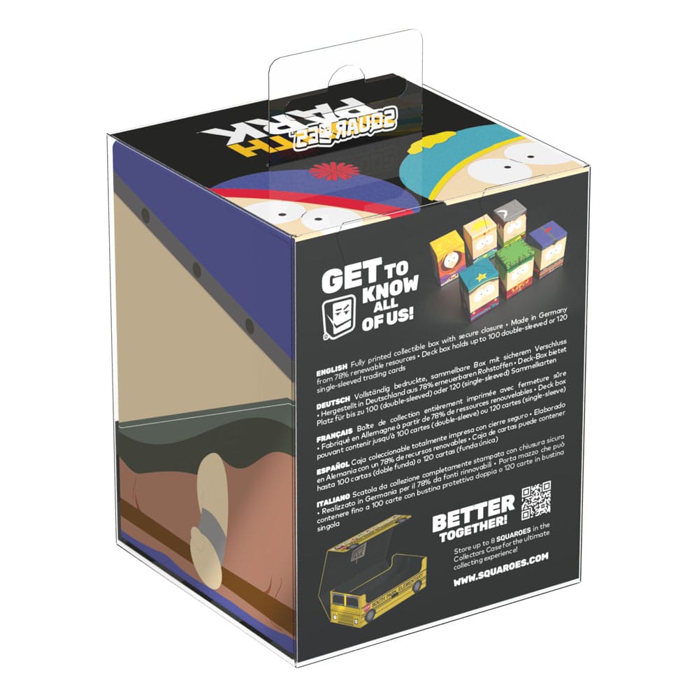 Squaroes by Ultimate Guard are the next generation of TCG gaming accessories! Crafted from high-quality, 78% sustainable materials they combine outstanding card protection with collectibility through exclusive designs, limited one-off printings, and deck boxes available in varying rarities. The South Park™ Squaroes hold up to 100 standard- or Japanese-sized trading cards (from games like Magic: The Gathering, Pokémon, Lorcana, Flesh and Blood, Yu-Gi-Oh!, Riftbound, and One Piece) in double protective sleeves*. As a new spin on Ultimate Guard’s fan-favorite Boulder deck box, Squaroes offer an ultra-sturdy case with a secure closure, while staying easy and convenient to open.