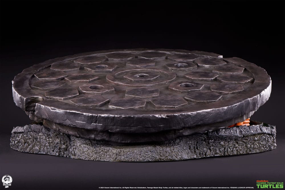 Fully sculpted by the Kucharek Brothers, this diorama is sure to evoke a sense of 90’s nostalgia. Standing approximately 16″ tall with an impressive 41″ diameter, this is the largest TMNT collectible PCS has produced to date. Featuring Leonardo, Michel