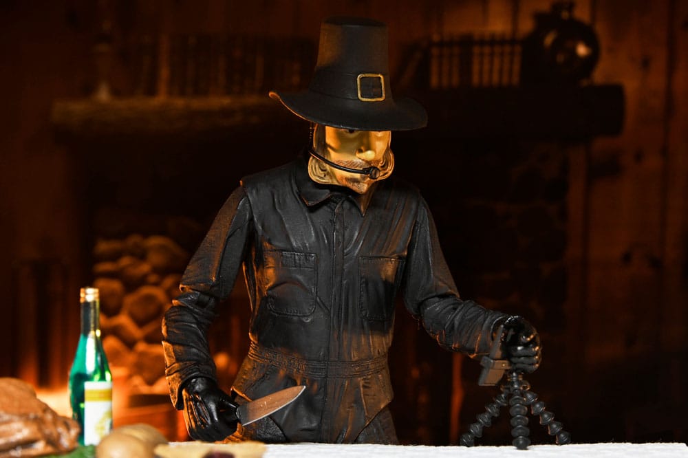 From Eli Roth’s 2023 slasher hit, Thanksgiving, comes a second Ultimate action figure of the holiday killer! Donning his turkey apron, John Carver is ready to cook up an unforgettable feast with a cornucopia of new accessories. This articulated, 7-inch scale figure includes a soft goods apron, interchangeable mask with microphone, bloody mask, melted mask, axe, electric cutter, cooking timer, cell phone on stand, pitchfork, kitchen knife, carving fork, and corkscrew. Plus, multiple interchangeable hands to hold his bounty of unconventional weapons! Comes in collector-friendly window box packaging with opening front flap, making it perfect for your NECA display. This figure is something to be thankful for!