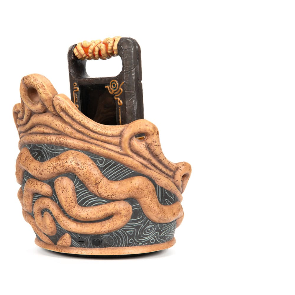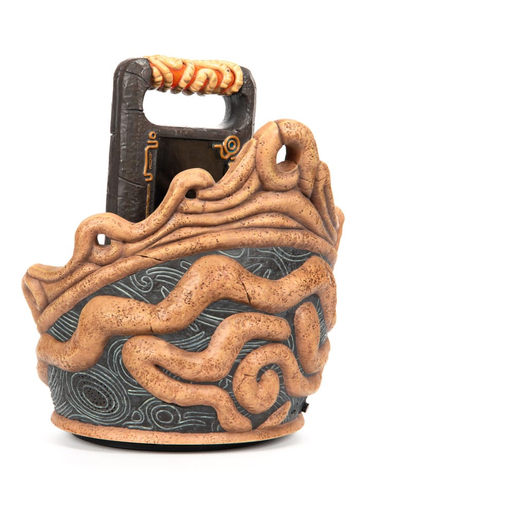 The Sheikah Slate in The Legend of Zelda: Breath of the Wild is a mystical, multifunctional tool that plays a central role in the game. As Link’s indispensable device, it aids him in solving puzzles, battling foes, and exploring the vast landscapes of Hyrule. The Legend of Zelda: Breath of the Wild – Sheikah Slate statue is a life-size high-quality resin collectible. It faithfully captures the intricate details of the Sheikah Slate, from the iconic eye (the crest of the Sheikah), to the markings and tablet’s texture. The tablet rests on a meticulously detailed base and can be detached.