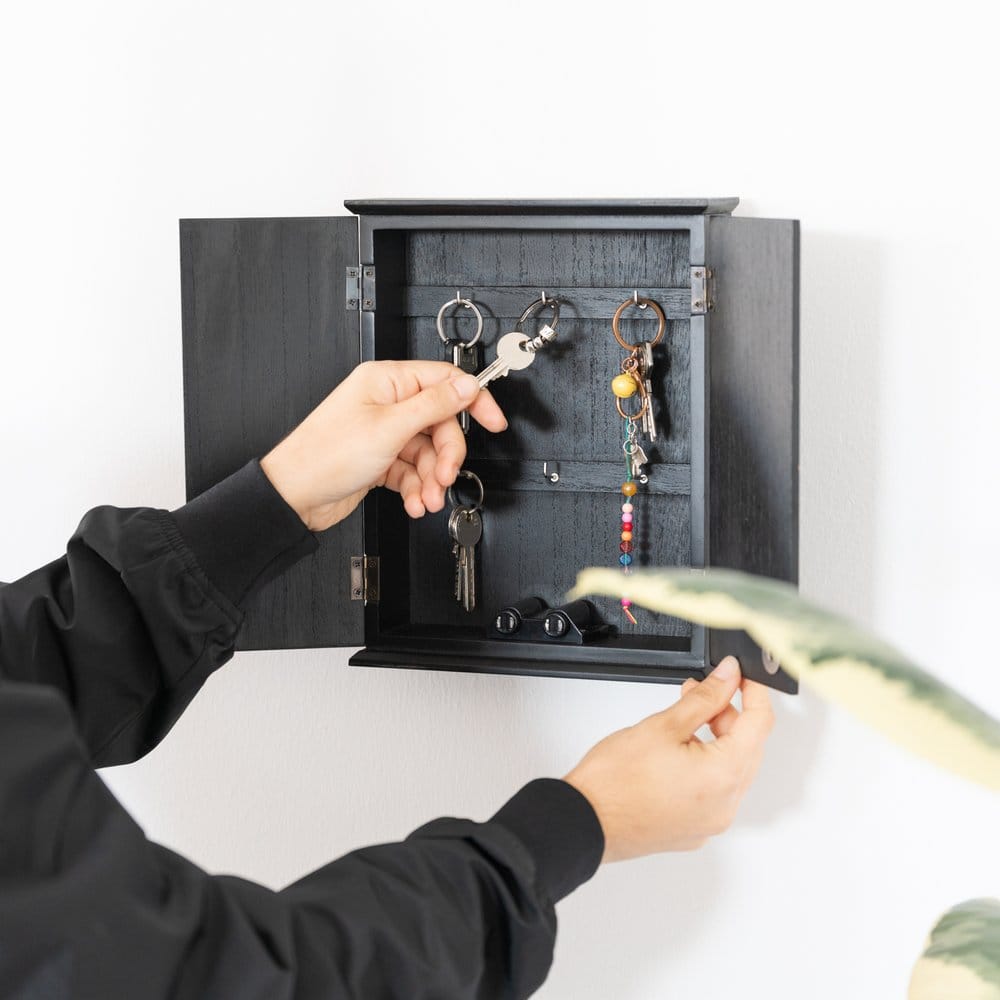 – Key rack with capacity for six key rings.