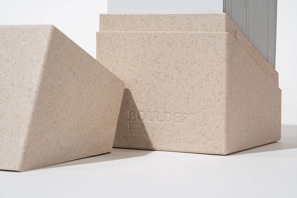 The Retrun to Earth Boulder 100+ deck box is the result of Ultimate Guard’s commitment to environmental protection and sustainability. Developed and produced in Germany, the RTE Boulder 100+ consists of 97% renewable resources, comes in FSC-certified grass paper packaging, and is fully recyclable—all without compromising on material quality or card safety. Designed to hold 100 double-sleeved cards in Ultimate Guard sleeves* from trading card games like Magic: The Gathering, Pokémon, Lorcana, Flesh and Blood, Yu-Gi-Oh!, Riftbound, or One Piece.