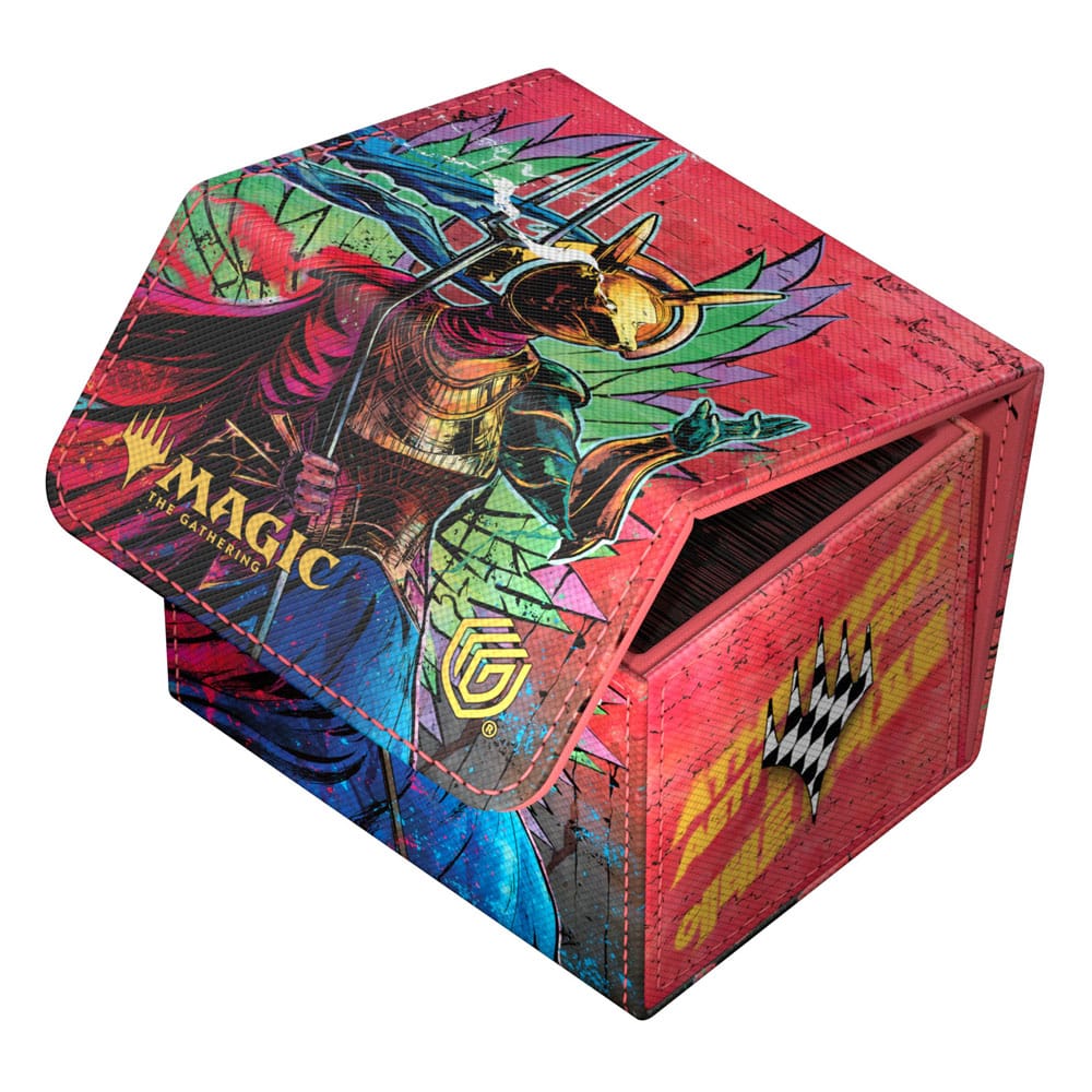 The Sidewinder 100+, made of durable Xenoskin material, holds up to 100 (double-sleeved) or 120 (single-sleeved) cards and is the perfect deck box for Commander/EDH decks. Printed in full color with officially licensed artworks from Magic: The Gathering’s Aetherdrift, Ultimate Guard’s Sidewinder deck boxes with their strong magnetic closure and quality microfiber inner lining are a safe and reliable storage place for MTG decks and individual t