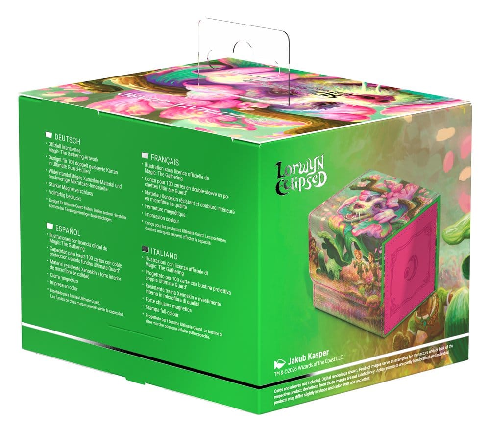 Ultimate Guard’s Sidewinder 100+ Xenoskin is a premium Magic: The Gathering deck box offering exceptional card protection with its durable Xenoskin material, microfiber inner lining, and strong magnetic closure—all while providing easy and convenient access to the cards inside. With space for 100 double-sleeved cards in Ultimate Guard sleeves* and printed with officially licensed artwork from Magic: The Gathering’s “Lorwyn Eclipsed” set, the Sidewinder 100+ Xenoskin is the perfect MTG deck box for all Magic formats (Commander/EDH, Modern, Standard, etc.). Designed to combine with Ultimate Guard’s Omnihive, Superhive, and Smarthive mass storage boxes.The Sidewinder 100+ made from durable Xenoskin material holds up to 100 double-sleeved cards*, which are kept secure in the deck box thanks to a strong magnetic closure and soft microfiber inner lining. The durable, high-quality Xenoskin surface of the Sidewinder is printed in full color with officially licensed artwork from Magic: The Gathering’s “Lorwyn Eclipsed” set.