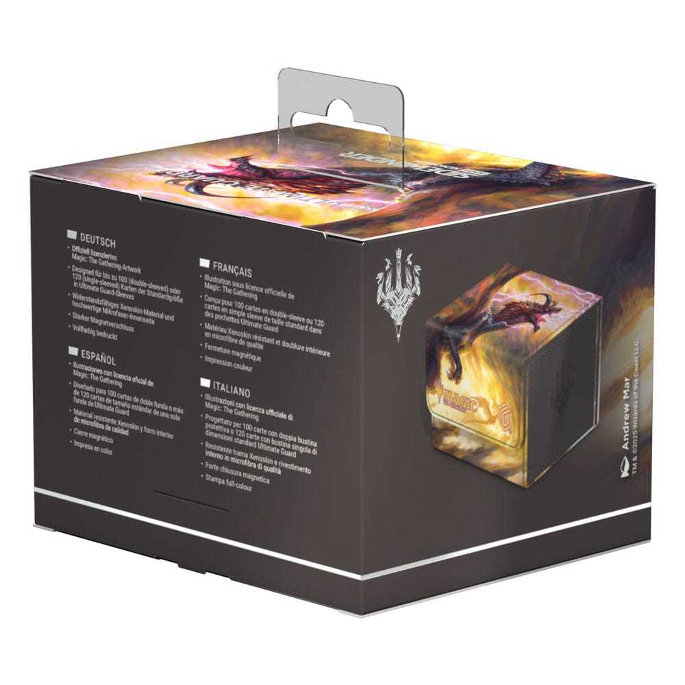 The Special Edition Ghostfire Sidewinder 100+ Xenoskin, with a spectacular shimmering embossing on the microfiber interior, is printed with officially licensed artworks from Magic: The Gathering’s Tarkir: Dragonstorm set. This high-quality deck box, made from durable Xenoskin material with a reliable magnetic closure, holds up to 100 double-sleeved or 120 single-sleeved cards.