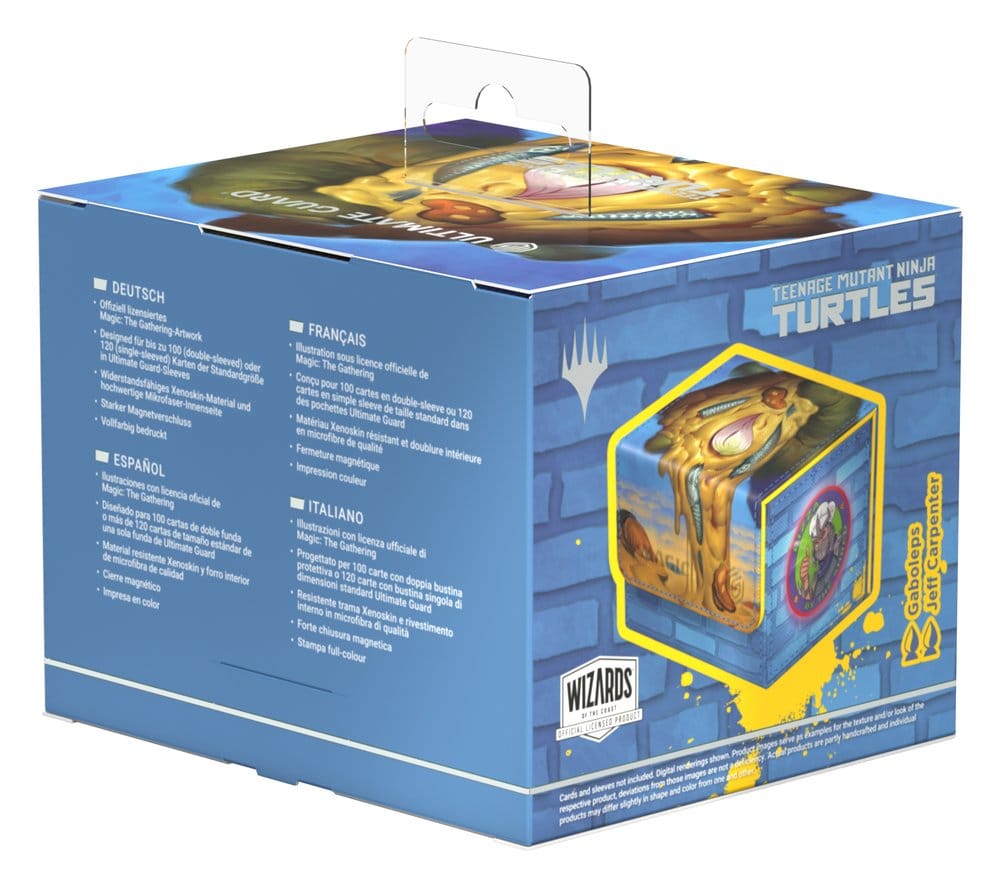 Ultimate Guard’s Sidewinder 100+ Xenoskin is a premium Magic: The Gathering deck box offering exceptional card protection with its durable Xenoskin material, microfiber inner lining, and strong magnetic closure—all while providing easy and convenient access to the cards inside. With space for 100 double-sleeved cards in Ultimate Guard sleeves* and printed with officially licensed artwork from the “Magic: The Gathering | Teenage Mutant Ninja Turtles” set, the Sidewinder 100+ Xenoskin is the perfect MTG deck box for all Magic formats (Commander/EDH, Modern, Standard, etc.). Designed to combine with Ultimate Guard’s Omnihive, Superhive, and Smarthive mass storage boxes.