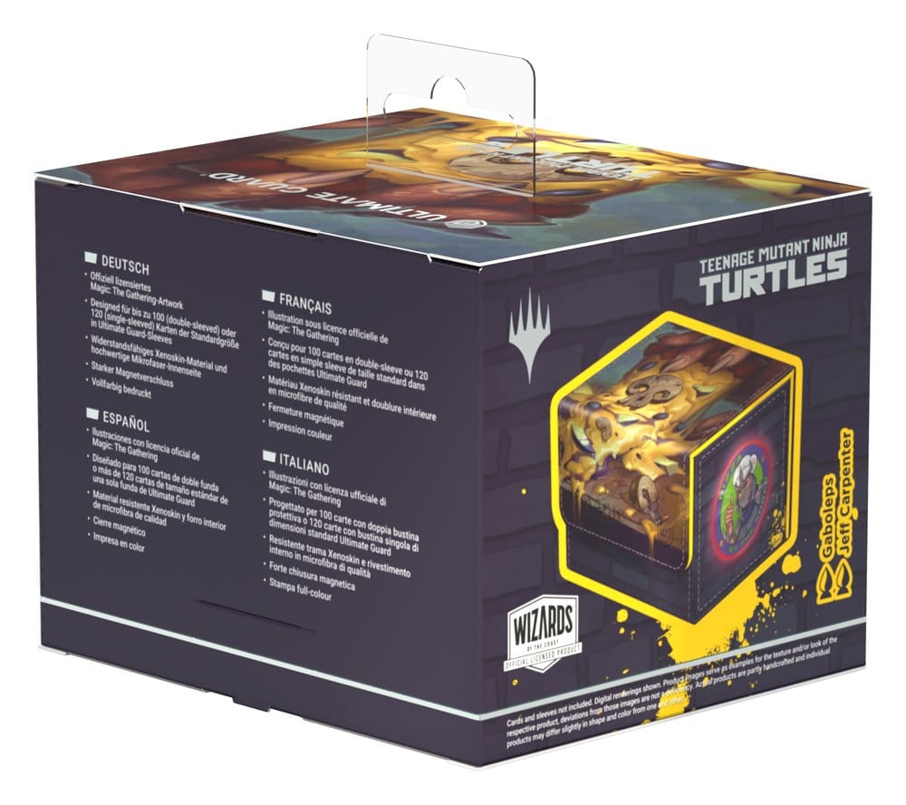 Ultimate Guard’s Sidewinder 100+ Xenoskin is a premium Magic: The Gathering deck box offering exceptional card protection with its durable Xenoskin material, microfiber inner lining, and strong magnetic closure—all while providing easy and convenient access to the cards inside. With space for 100 double-sleeved cards in Ultimate Guard sleeves* and printed with officially licensed artwork from the “Magic: The Gathering | Teenage Mutant Ninja Turtles” set, the Sidewinder 100+ Xenoskin is the perfect MTG deck box for all Magic formats (Commander/EDH, Modern, Standard, etc.). Designed to combine with Ultimate Guard’s Omnihive, Superhive, and Smarthive mass storage boxes.