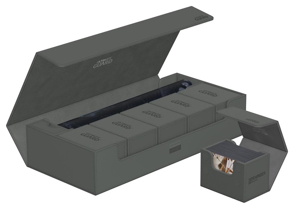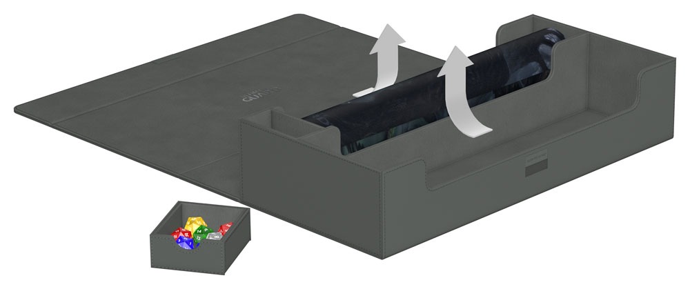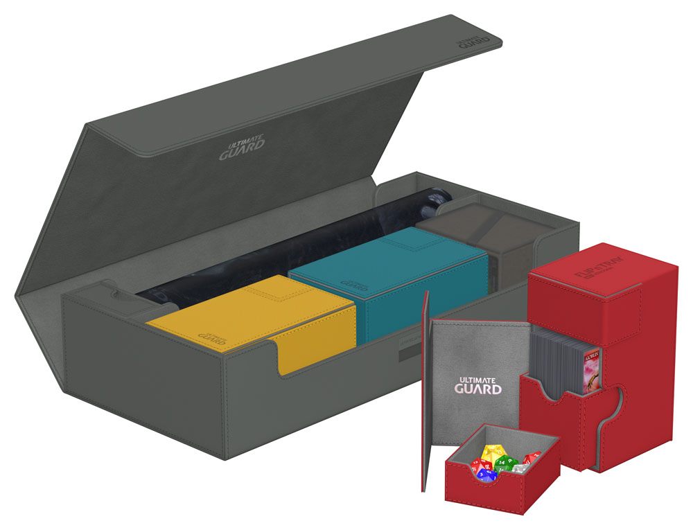 Earn 65 GBCoinsUltimate Guard’s Superhive 550+ Xenoskin is the perfect all-in-one solution for a successful game night! This versatile storage box is divided into two compartments: one holds up to two playmats and includes a separate, removable dice tray, while the other provides space for four Sidewinder 100+ Xenoskin deck boxes, five Boulder 100+ deck boxes, or up to 550 double-sleeved cards in Ultimate Guard sleeves* from games like Magic