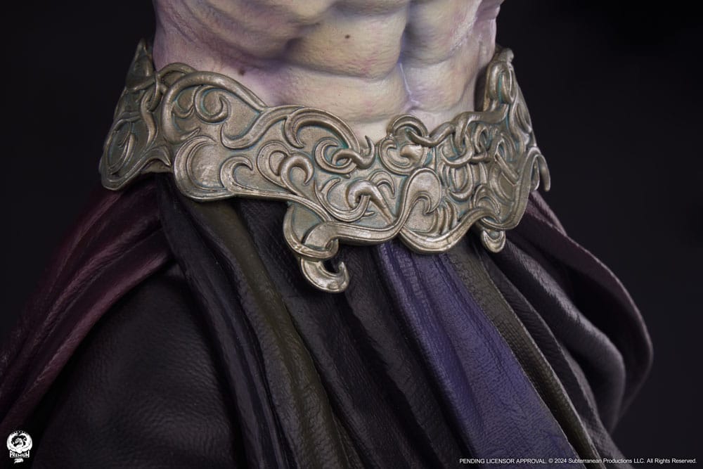 The Marcus 1:3 Statue is fully sculpted standing nearly 27″ tall with an intimidating 30″ wingspan. This unique vampire design is brought to stunning life with detailed sculpting capturing the musculature and supernatural vascularity of this immortal creature. Marcus’ bat-like features and razor sharp teeth bring some serious severity to his ferocious expression. The life-like textures of his tattered clothing and ornate belt add yet another layer of dimension to this impressive design.